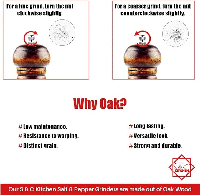 - [ PREMIUM QUALITY WOOD ] – We ensure that you only use a product that will be safe and durable for the whole period that it will last you. It is for this reason that we ensure we use premium quality oakwood to manufacture this pepper grinder to be sturdy, durable, and reliable for all-occasion use.