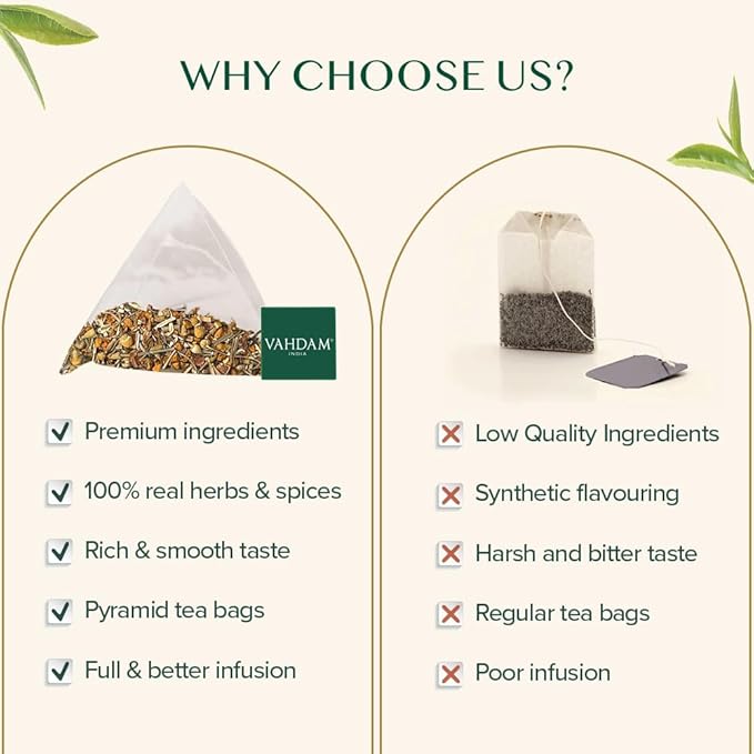 - Full-Flavor Tea Bags - High-quality tea leaves in plant-based biodegradable tea bags with its pyramid shape, the tea leaves are able to unfurl fully, releasing rich flavors for an aromatic tea experience.