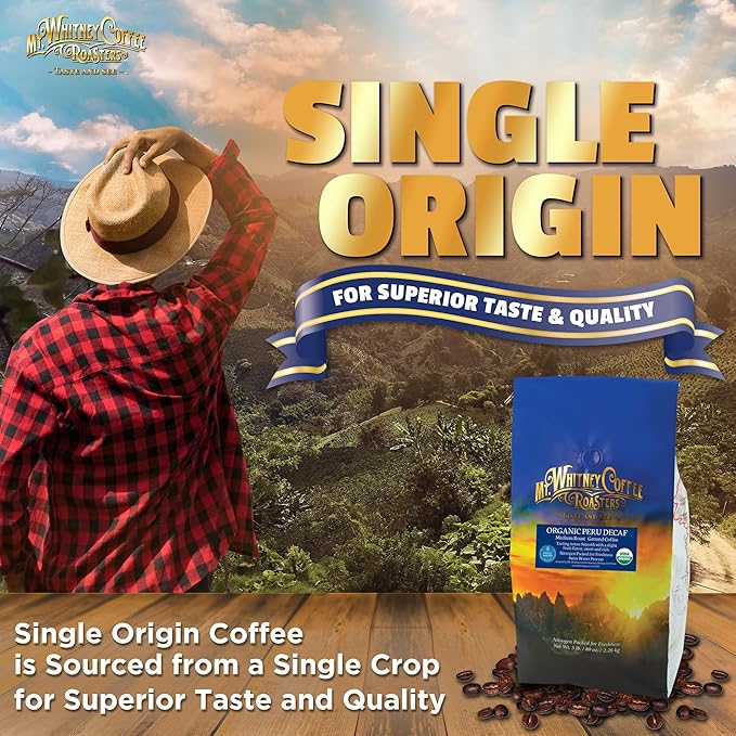 - SINGLE ORIGIN FOR SUPERIOR TASTE WITHOUT THE CAFFEINE - Mt. Whitney’s Organic Decaf Coffee is a single origin coffee, comprised of a single crop. This can accentuate certain flavor attributes specific to a region. By using the Swiss Water Process, the caffeine is removed in a gentle, chemical-free procedure that retains this shade grown organic coffee’s superior taste and quality.