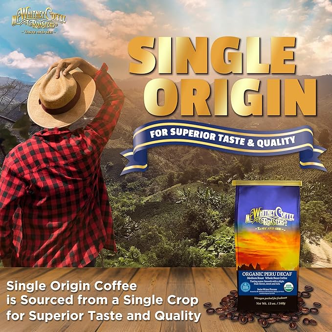 - SINGLE ORIGIN FOR SUPERIOR TASTE WITHOUT THE CAFFEINE - Mt. Whitney’s Organic Decaf Coffee is a single origin coffee, comprised of a single crop. This can accentuate certain flavor attributes specific to a region. By using the Swiss Water Process, the caffeine is removed in a gentle, chemical-free procedure that retains this shade grown organic coffee’s superior taste and quality.