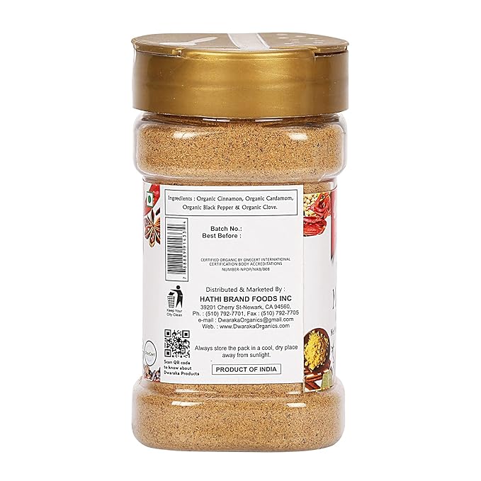 - Dwaraka Organic Tea Masala is a unique blend of flavorful, aromatic, and organic Indian spices used to prepare the famous Indian Masala Tea