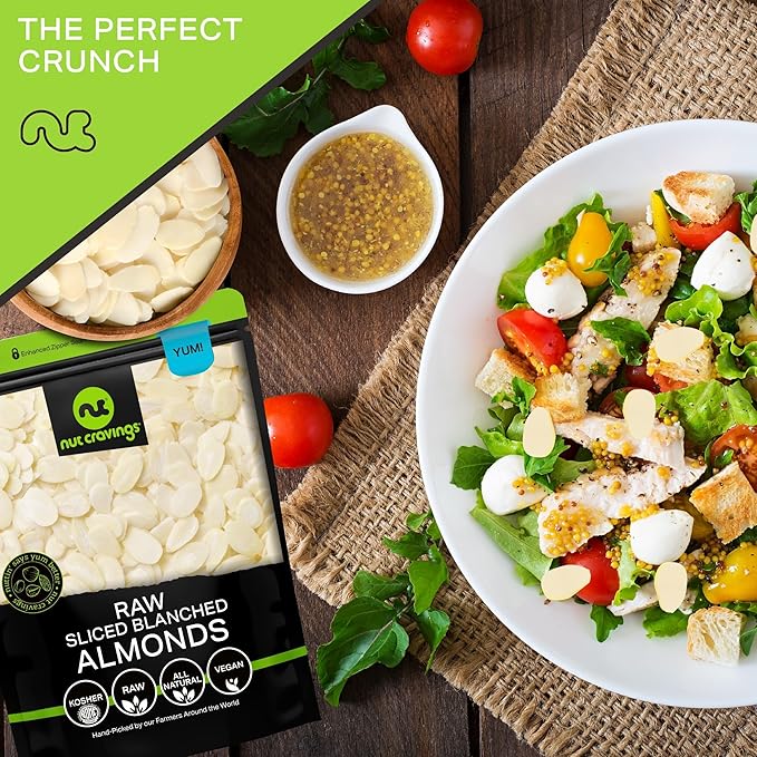 - IDEAL FOR YUMMY RECIPES, SOLO SNACKING, AND MORE: Sliced Almonds are great for solo snacking sessions, salads, healthy meals, smoothies or shakes, baking, desserts You name it!