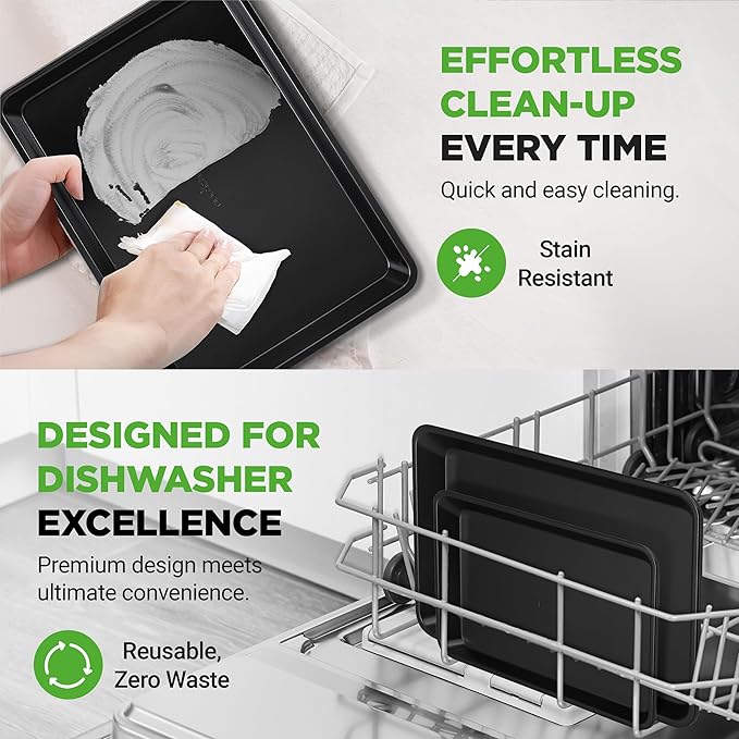 - DISHWASHER SAFE: Use this stackable wide oven trays non stick pans for baking pastry dessert, food prep, serving without the hassle of cleaning. Just rinse under water or run through the dishwasher. Handwash recommended extending pan life