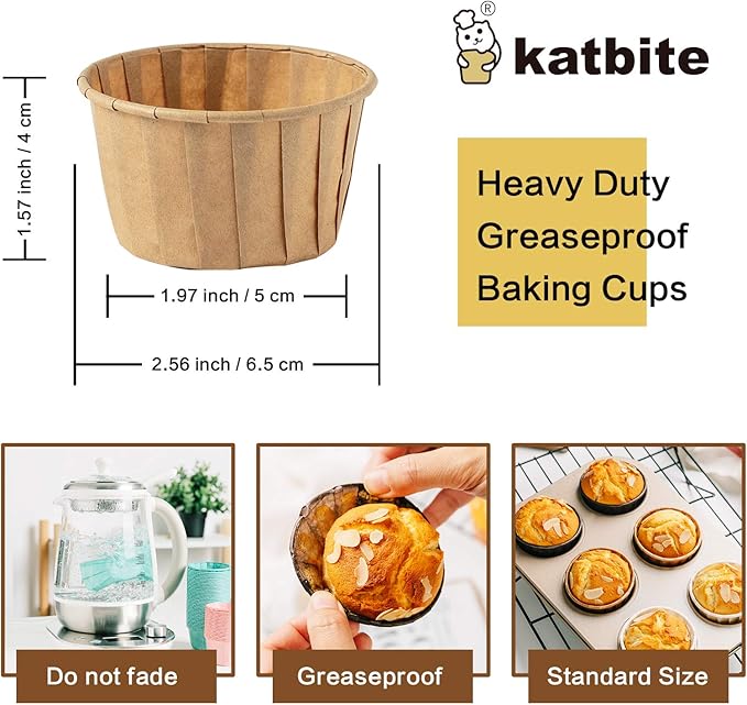 - Safe to Use - Paper cupcake liners made of 100% pure wood pulp, no fluorescent agent. It will not fade after being boiled in water for half an hour, safe and non-toxic, feel free to use. Katbite greaseproof paper temperature resistance is from -40 to 482℉.Whether it's an oven, Microwave oven, steamer or refrigerator, you can use this muffin liners.