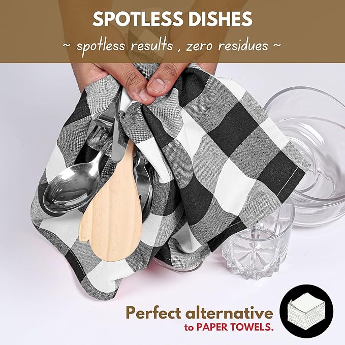 - SUPER ABSORBENT: Say goodbye to spills and wet dishes! Our towels soak up water and messes in a flash, making your kitchen cleanup quick and effortless.