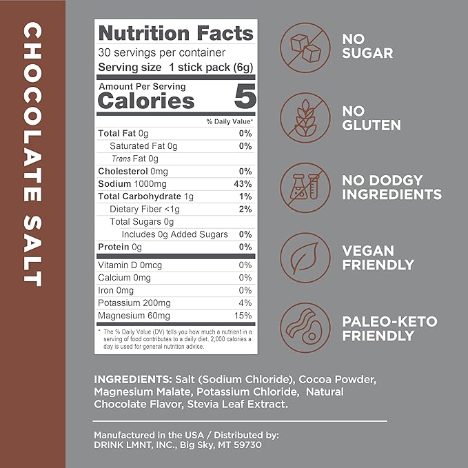 - TAKE OUR SALT AND MAKE IT YOURS: Not only can you use LMNT's chocolate flavors for zero sugar mochas and zero sugar hot chocolate. You can also mix them into your protein shakes, overnight oats, and your favorite recipes.