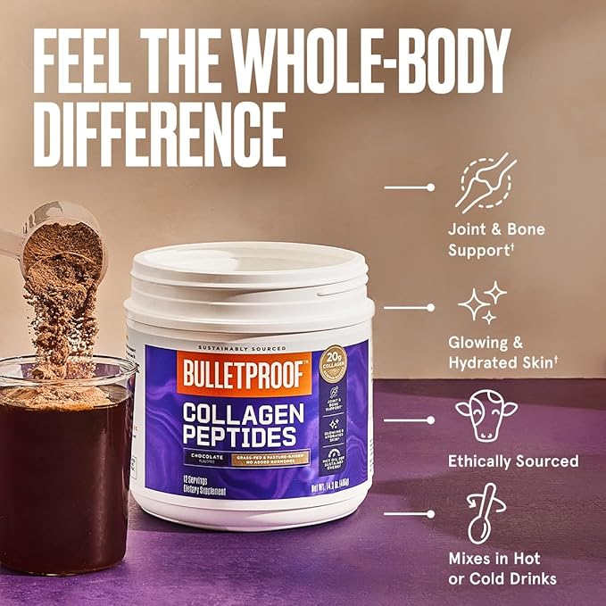 - At Bulletproof, we only use science-backed ingredients to deliver maximum benefit. For a simple, consistent source of collagen, add Chocolate Collagen Peptides to your diet