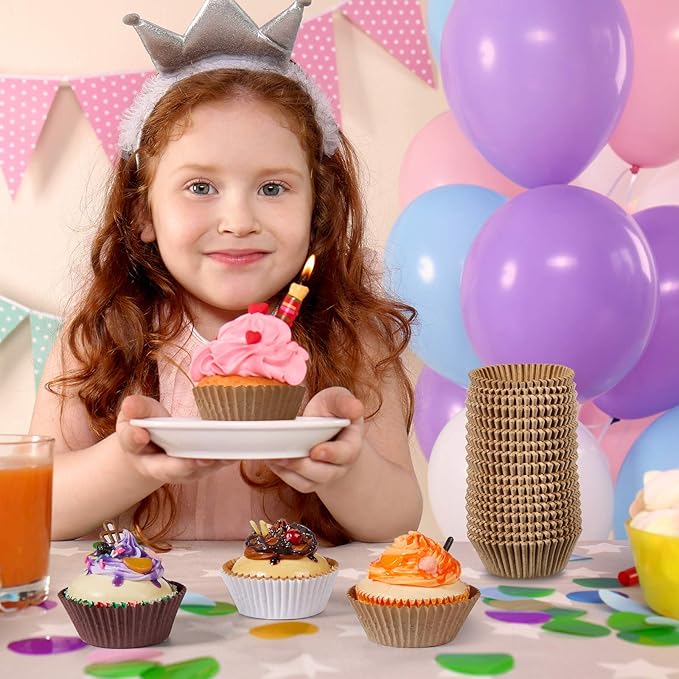 Zonon 1000 Counts Cupcake Liners for Baking Liners Paper Cupcake Wrappers Bulk Cup Cake Cases Muffin Baking Paper Cups for Candy Cooking(Brown White Nature,1.97 Inch-Standard Size)