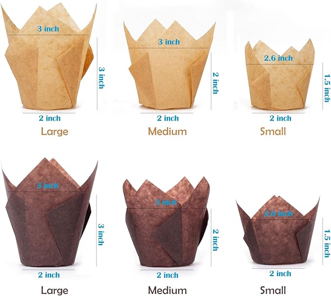 GOLDEN APPLE, 200 Pcs Tulip Cupcake Liner Baking Cup Muffin Tins Cups for Weddings, Birthdays, Baby Showers (Large, Natural)