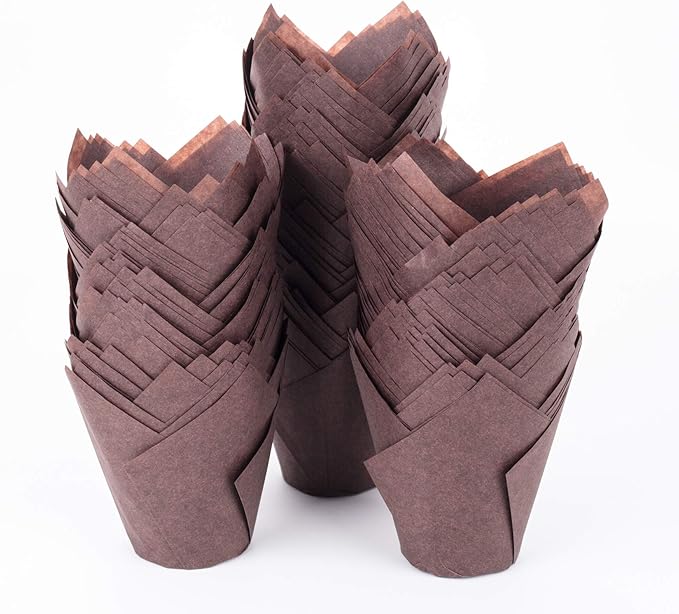 GOLDEN APPLE, 200 Pcs Tulip Cupcake Liner Baking Cup Muffin Tins Cups for Weddings, Birthdays, Baby Showers (Large, Brown)