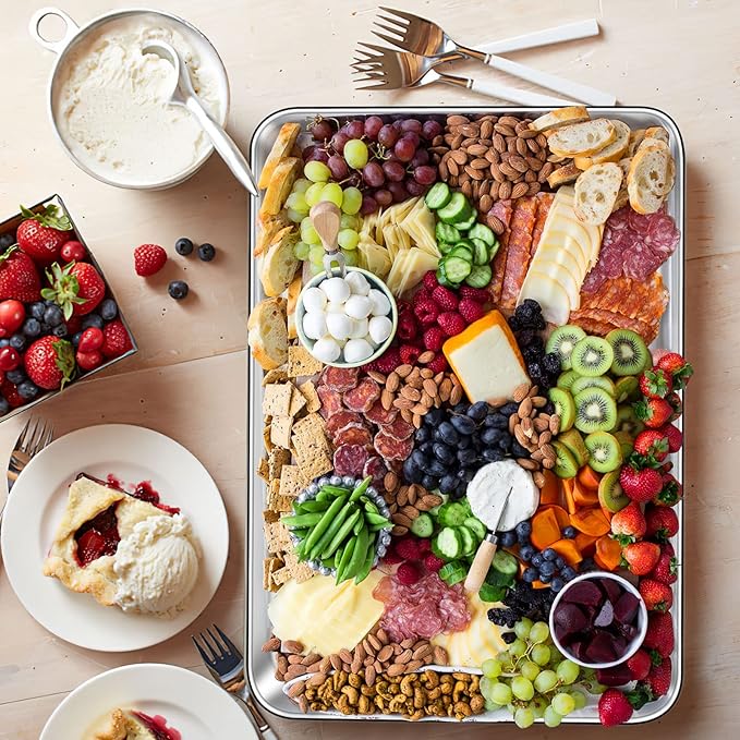 - π πππππππππππ & πππππππ: Our stainless cookie sheet set features its solid construction and feel sturdy enough when holding in hands, nice weight to cook with, rust resistant, high hardness, no distortion, no worries about bending, durable to use for years.
