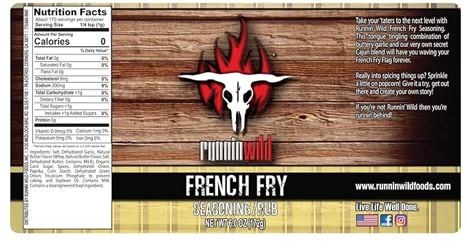- KICK IT UP | Take your ‘taters to the next level with Runnin’ Wild French Fry Seasoning. This tongue tingling combination of buttery garlic and our very own secret Cajun blend will have you waving your French Fry Flag forever.