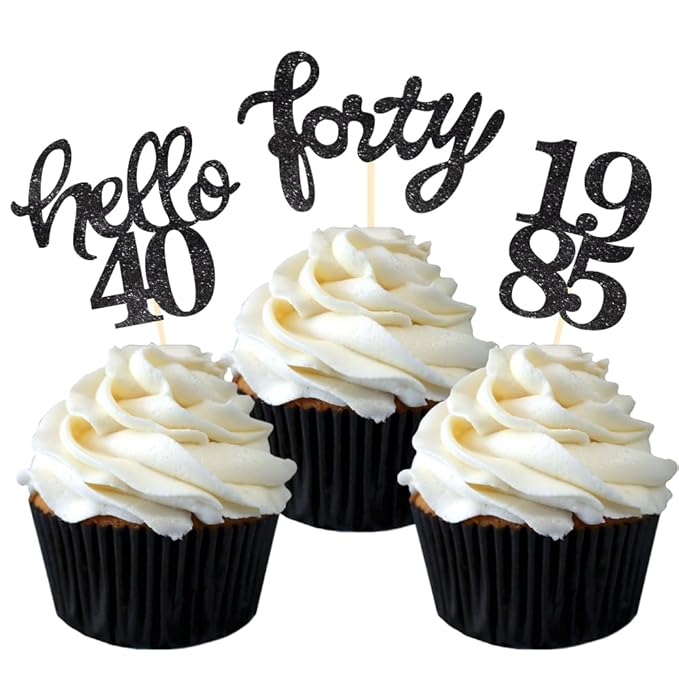 - Package Includes: 8 Pieces “1985” Number Glitter Cupcake Toppers, Size : 1.4 inch*2 inch; 8 Pieces “Forty”Glitter Cupcake Toppers, Size : 2.6 inch*1.6 inch; 8 Pieces “hello 40”Glitter Cupcake Toppers, Size : 2.6 inch*2.2 inch