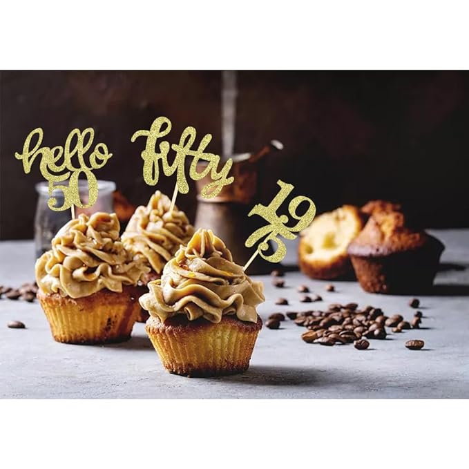 - Package Includes: 8 Pieces “1975” Number Glitter Cupcake Toppers, Size : 1.4 inch*2 inch; 8 Pieces “Fifty”Glitter Cupcake Toppers, Size : 2.6 inch*1.6 inch; 8 Pieces “hello 50”Glitter Cupcake Toppers, Size : 2.6 inch*2.2 inch