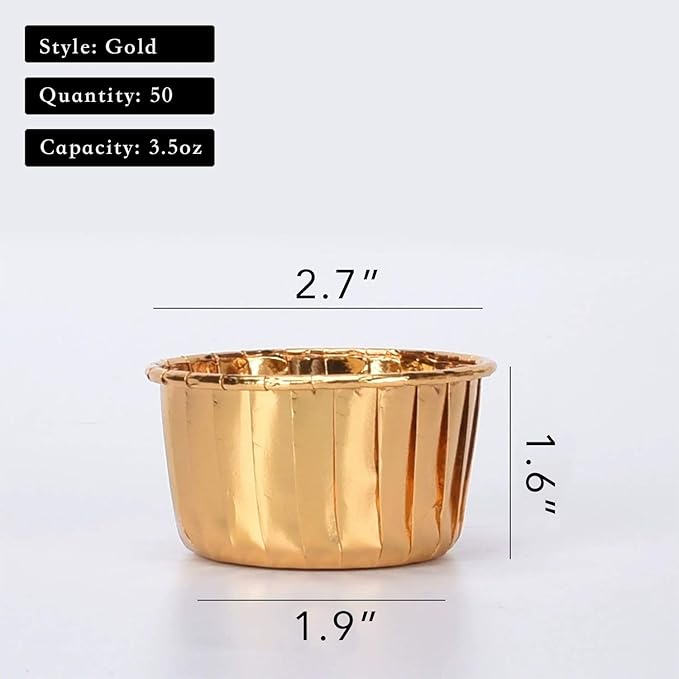 Party Hippo Gold Cupcake Baking Cups, 3.5 Oz 50 pcs Disposable Foil Muffin Liners, Aluminum Ramekin Holders