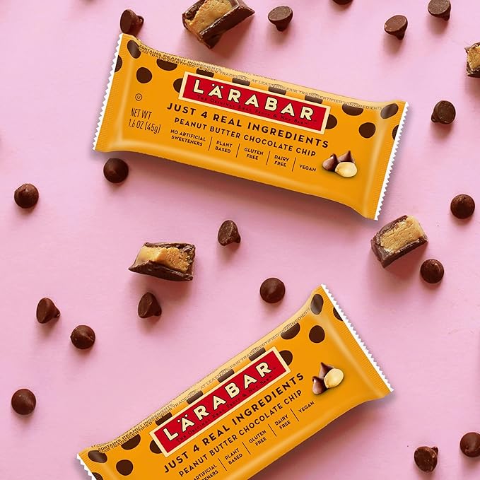 - CONTAINS: One 9.6 oz regular cardboard box of Larabar Peanut Butter Chocolate Chip, Gluten Free Vegan Fruit and Nut Bars, 6 Ct; Perfect for instant snacking