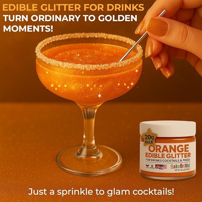 Bulk (20g) Orange Edible Glitter for Drinks | Premium Edible Glitter for Cakes Drink Brew Glitter Orange Edible Glitter Orange Cake Decorations Edible Orange Glitter for Strawberries Cocktail Glitter