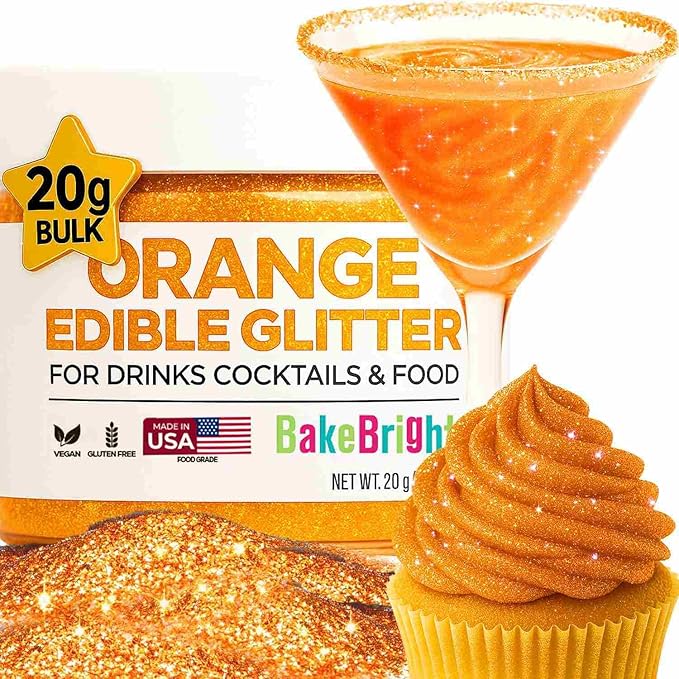 - ๐๐ข๐ข๐ ๐๐ฅ๐๐๐๐, ๐ฉ๐๐๐๐ก ๐๐ฅ๐๐๐ก๐๐๐ฌ & ๐ ๐๐๐ ๐๐ก ๐ง๐๐ ๐จ๐ฆ๐ Crafted with 100% safe food grade ingredients our glitter is tasteless, vegan, gluten and dairy free, halal and is made locally in the US. Our edible orange glitter is safe for kids and everyone it also works great as cake drip, cake decor for orange blue cake decorations for professional results without affecting its taste