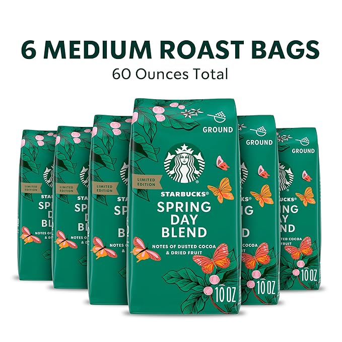 - PREMIUM GROUND COFFEE: Starbucks delivers fresh-tasting roasted coffee with our limited-edition Starbucks Spring Day Blend—available in these six 10-ounce bags of ground coffee