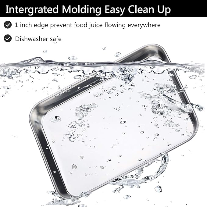 - Healthy Materials: The baking sheet is made of 18/0 Stainless Steel which is without toxic chemical coating. It can provides quickly and evenly heating and cooling