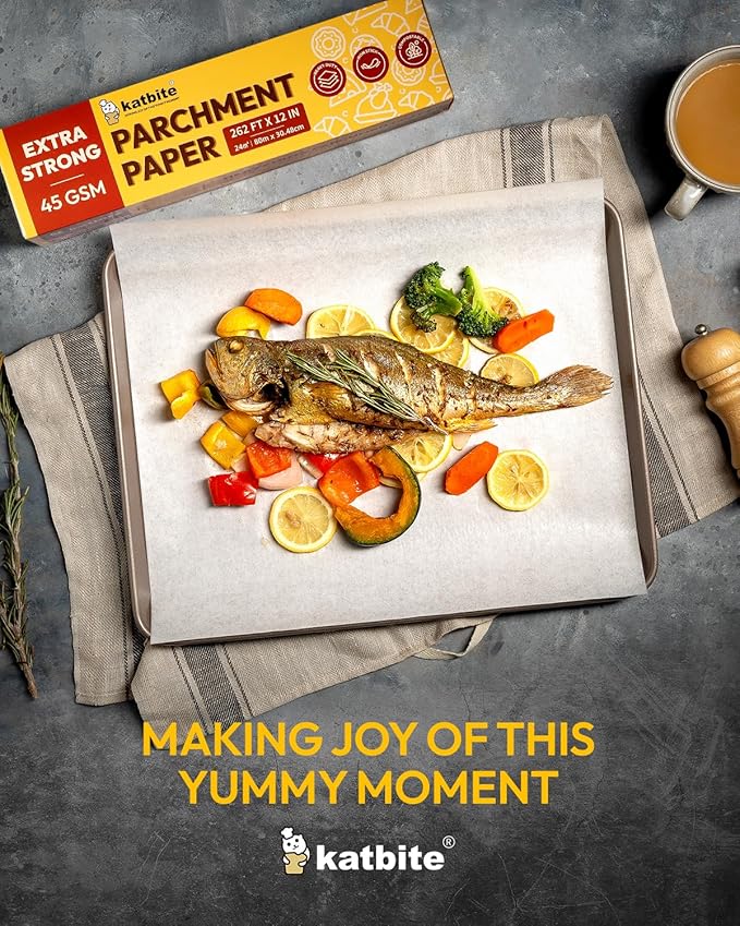 Katbite Heavy Duty Parchment Paper Roll for Baking, 12 in x 262 ft Non-Stick Baking Paper for Cooking, Baking Cookies, Grilling, Air Fryer and Steaming (1Pack)