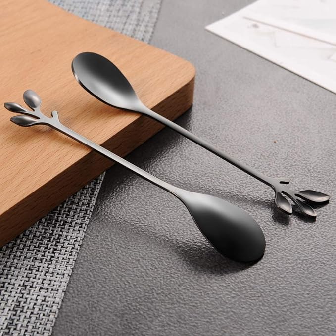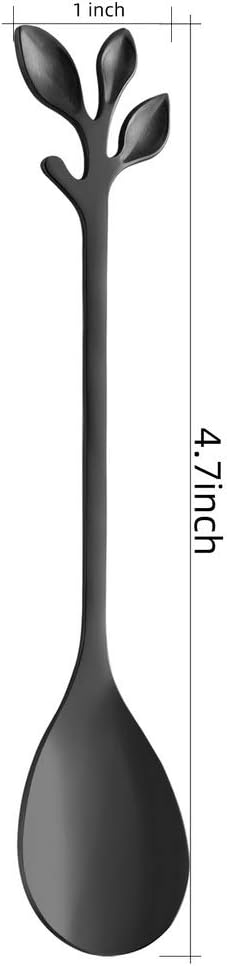 AnSaw Elegant Black Leaf Coffee Spoons - 10-Piece, 4.7" Mini Stainless Steel Espresso & Dessert Tea Spoons, Perfect for Demitasse & Small Servings