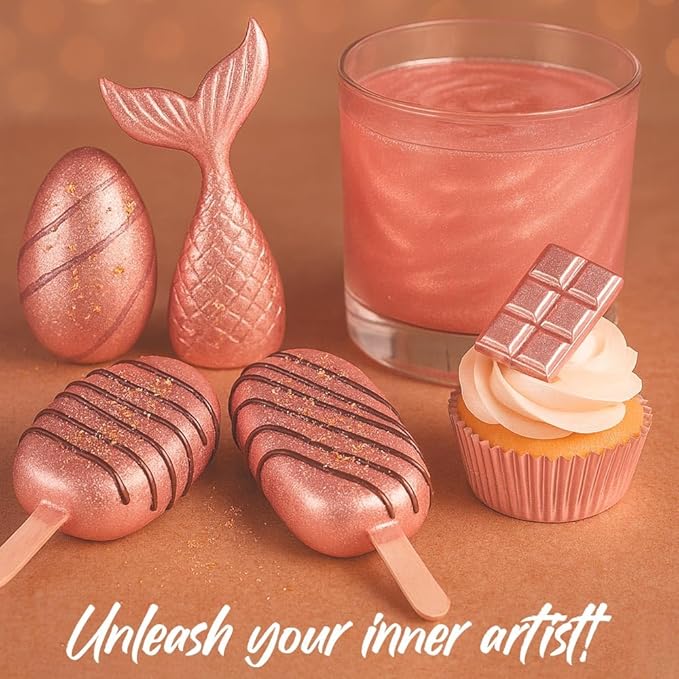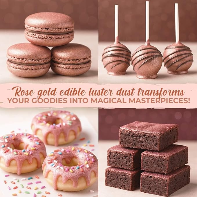 Bulk (20g) Rose Gold Luster Dust Edible Glitter for Cocktails | Premium Edible Rose Gold Luster Dust for Cake Decorations - Pink Edible Glitter for Drinks Cupcakes Cookies Cakes Food Paint