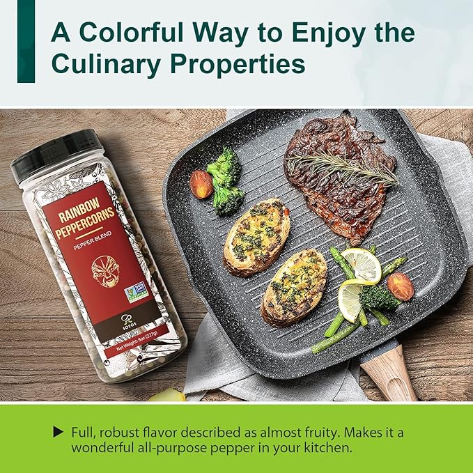 - DISTINCTIVE FLAVOR: Colorful and multi-layered mixture of black, white, green, and pink peppercorns with sweet undertones. The robust flavor is described as almost fruity. Its mellow complexity makes it a wonderful all-purpose pepper in your kitchen.