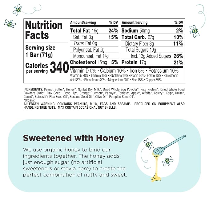 - PERFECT BAR PEANUT BUTTER PROTEIN BAR: Ten 2.5-oz organic protein bars with freshly ground organic peanut butter, organic honey, a satisfying cookie dough texture, whole food protein, and 20+ superfoods