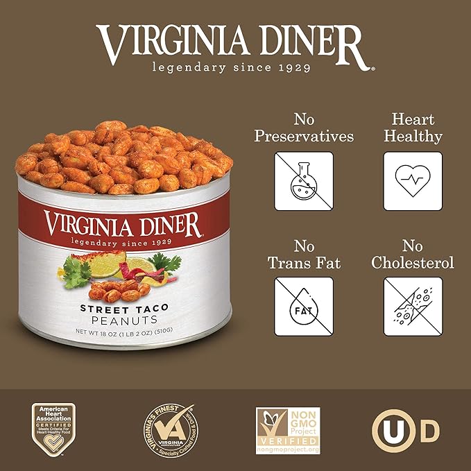 Virginia Diner Flavored Peanuts: Gourmet Street Taco Seasoning, Virginia Nuts, 18 Ounce Tin