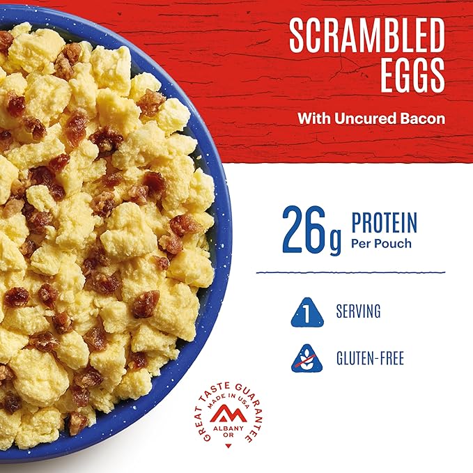 Mountain House Scrambled Eggs with Uncured Bacon Pro-Pak | Freeze Dried Backpacking & Camping Food | Gluten-Free | 1 Serving