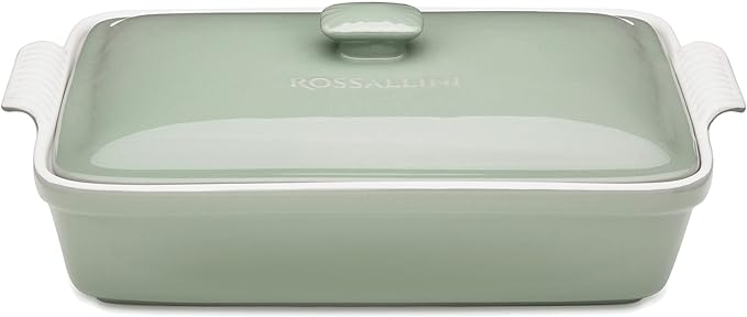 Stoneware Casserole Dish Bakeware Set with Lid, Covered Rectangular Dinnerware, Extra Large 4.23 Quart, 13 by 9 Inch, Verde Salvia [Sage Green]