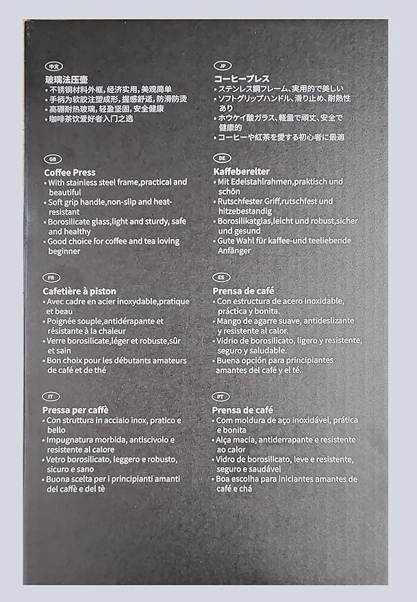 - [French Coffee Pot with Innovative 4 Level Filtration System] Used the latest manufacturing technology and combined aesthetics to design this elegant french coffee pot, tea pot .With the 4 levels extra fine micro stainless steel mesh filter, you could brew your coffee or tea with the filter, to get a better taste without the coffee grounds mixing in your coffee.