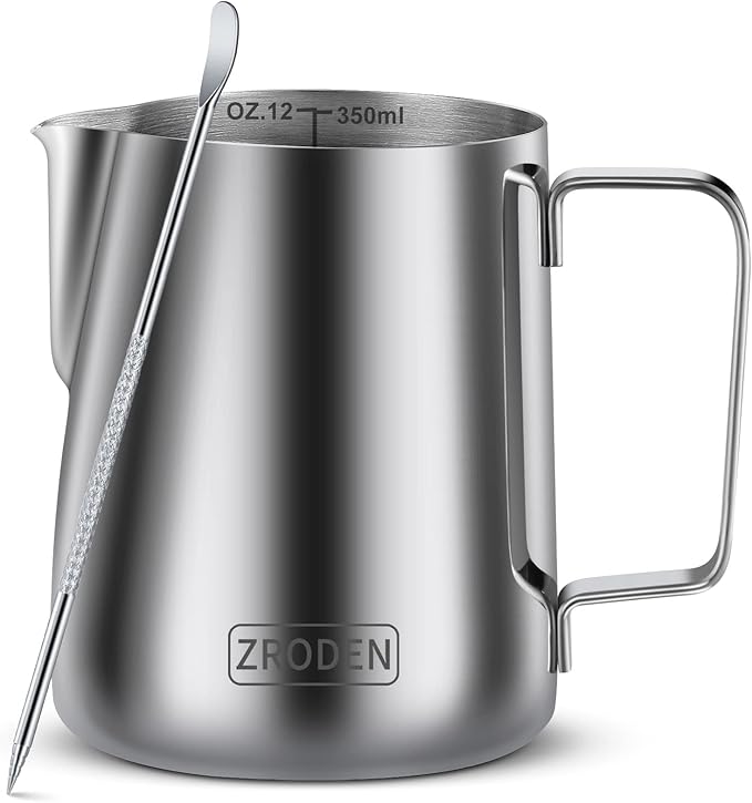 - 【PERFECT ESPRESSO MACHINE ACCESSORIES】 The milk frothing Pitcher can be used in different ways: froth or steam milk for lattes; measure liquids; serve milk or cream. Perfect milk jug for making frothing or steaming milk for espresso, cappuccino or hot chocolate.