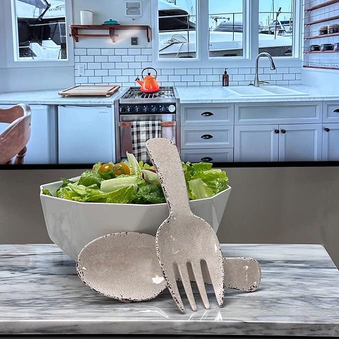 - Rustic Crackle Finish: The cream crackle design provides a timeless, rustic look that enhances your table setting. The finish adds a unique texture, making these salad servers stand out as both functional tools and decorative pieces.