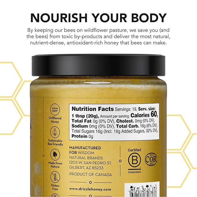 - FROM HIVE TO TABLE: Drizzle's honey is sourced with care from bee-friendly farms. It's non-GMO, gluten-free, certified kosher, and contains no artificial ingredients for pure delicious taste