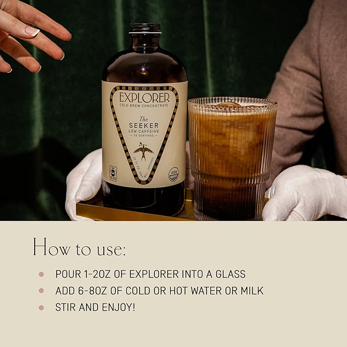 Explorer Cold Brew Organic Liquid Coffee Concentrate, Seeker Low Caffeine, Drink Iced or Hot, 32 fl oz, Makes 20+ Cups