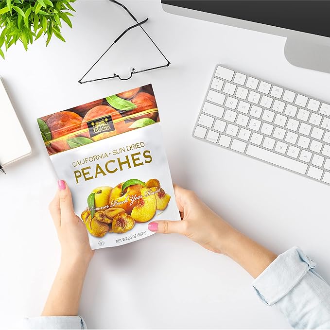 Traina Home Grown California Sun Dried Peaches - Healthy & Non-GMO, Natural Sweet Flavor Fruit No Sugar Added, Perfect Snack In Resealable Pouch (20 Oz)