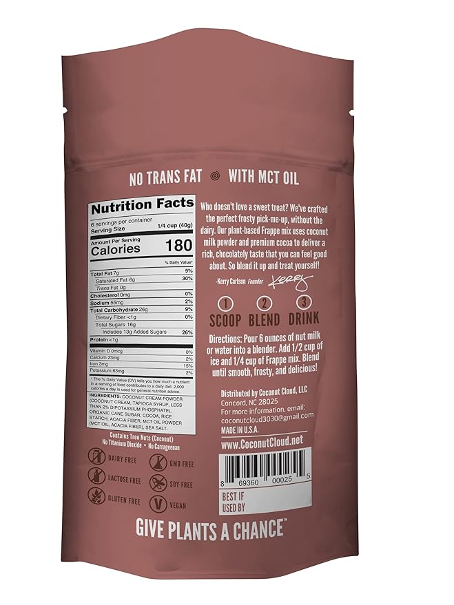 Coconut Cloud Frozen Hot Chocolate | Blended Instant Frappe Iced Cocoa | Add Nut Milk, Ice & Enjoy | Easy, Creamy, Delicious, Tasty Barista Quality. (Vegan, Dairy-Free, Plant Based, Certified Gluten-Free, Women Owned, US Made), 6 Servings