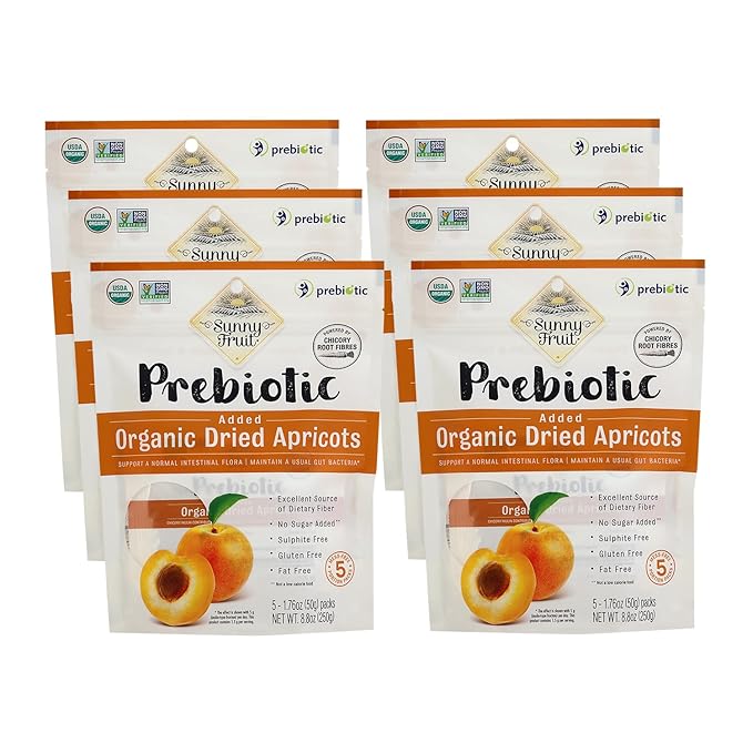 Sunny Fruit Organic Prebiotic Apricots - 6 Bags (30 Individual Portion Packs) | No Preservatives, No Sugar Added | Convenient Snack Packs with Prebiotic Fiber | ORGANIC, NON-GMO, KOSHER, HALAL