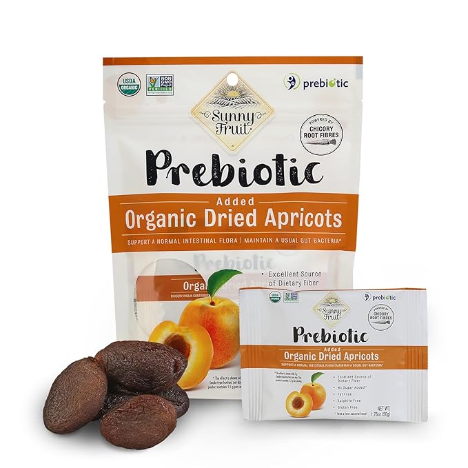 - SUPER NUTRITION: Sunny Fruit Prebiotic Apricots are infused with chicory root, famous for its health benefits and bursting with prebiotic fiber. They also are an excellent source of potassium, iron and calcium, which makes eating well easier than ever before!