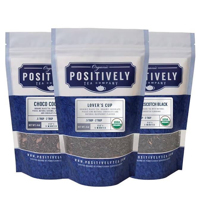 Organic Positively Tea Company, Dessert Tea Sampler, Loose Leaf, 4 Ounce, 3 Pack
