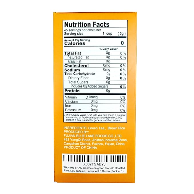 TIAN HU SHAN Genmaicha Green Tea with Roasted Rice, Low Caffeine Genmaicha Tea Loose Leaf 8 Ounce / 226g (Pack of 1)