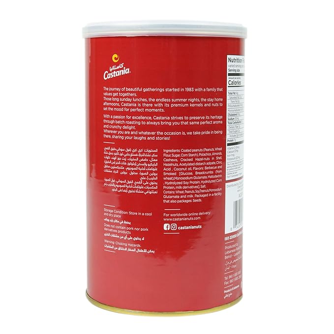 - Castania mixed bbq nuts crunchy, tasty blend of roasted and salted almonds, pistachios, hazelnuts and Lebanese style coated peanuts