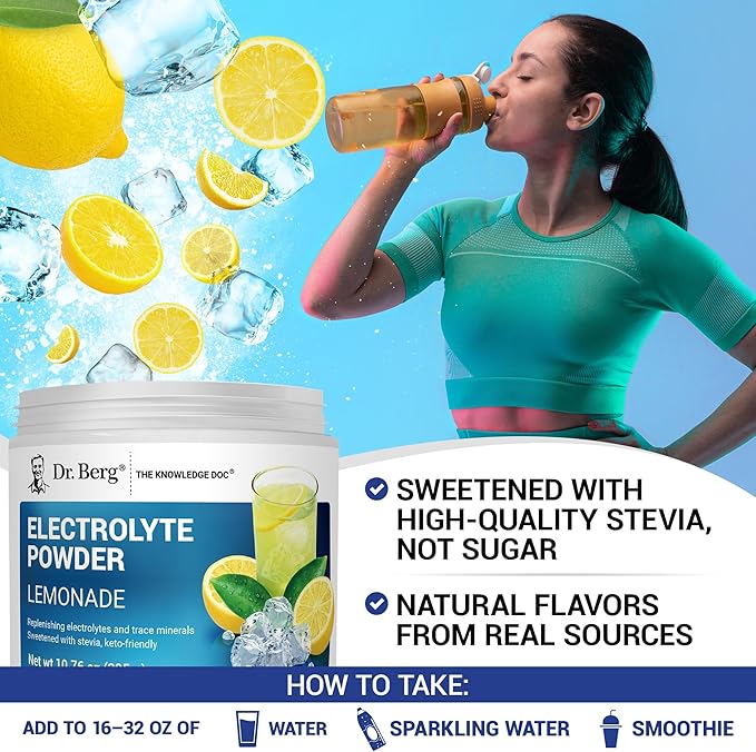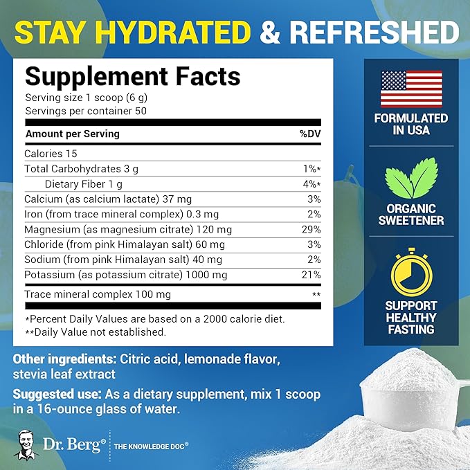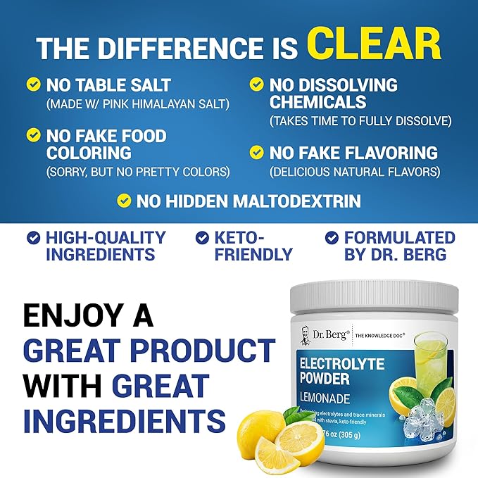 Dr. Berg Zero Sugar Hydration Keto Electrolyte Powder - Enhanced w/ 1000 mg of Potassium & Real Pink Himalayan Salt (NOT Table Salt) - Lemonade Flavor Hydration Drink Mix Supplement - 50 Servings