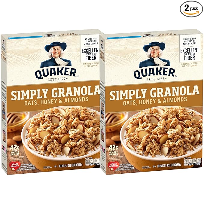 - Includes 2 (24oz) boxes of Quaker Simply Granola Oats, Honey, & Almonds