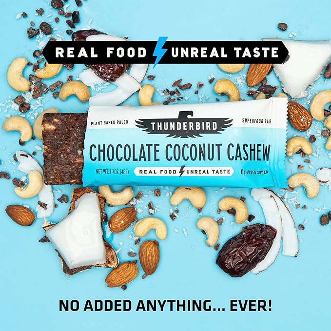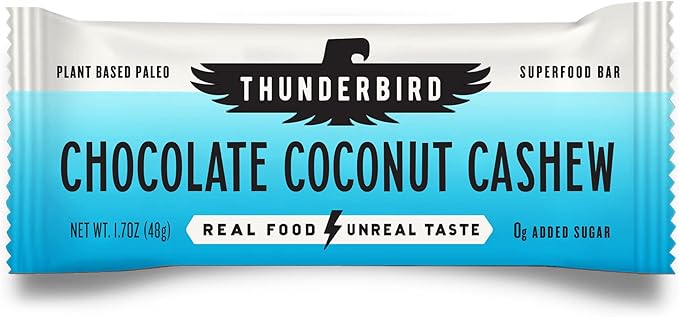 Thunderbird Bars Energy Snack, Gluten-Free with Protein, Healthy Real Food, Vegan Paleo Non-GMO, No Added Sugar, Chocolate Coconut Cashew Flavor (12 Count, 1.7 oz. Bars)
