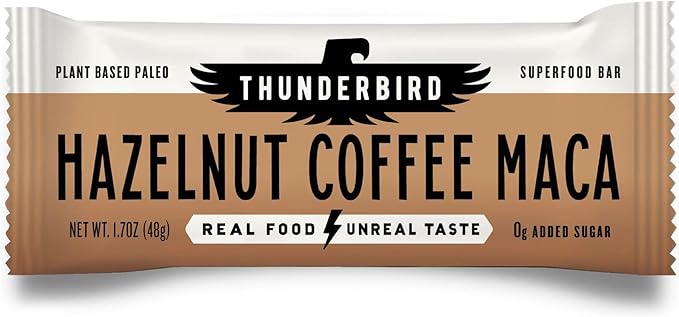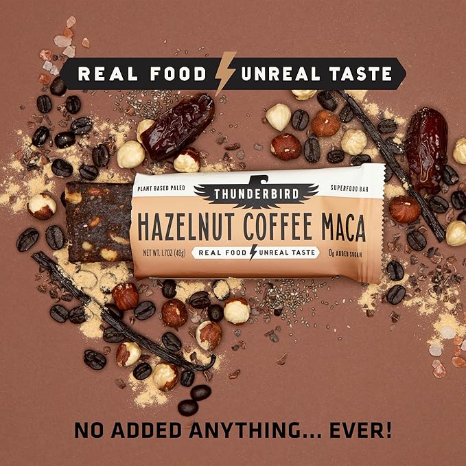 Thunderbird Bars Energy Snack, Gluten-Free with Protein, Healthy Real Food, Vegan Paleo Non-GMO, No Added Sugar, Hazelnut Coffee Maca Flavor (12 Count, 1.7 oz. Bars)