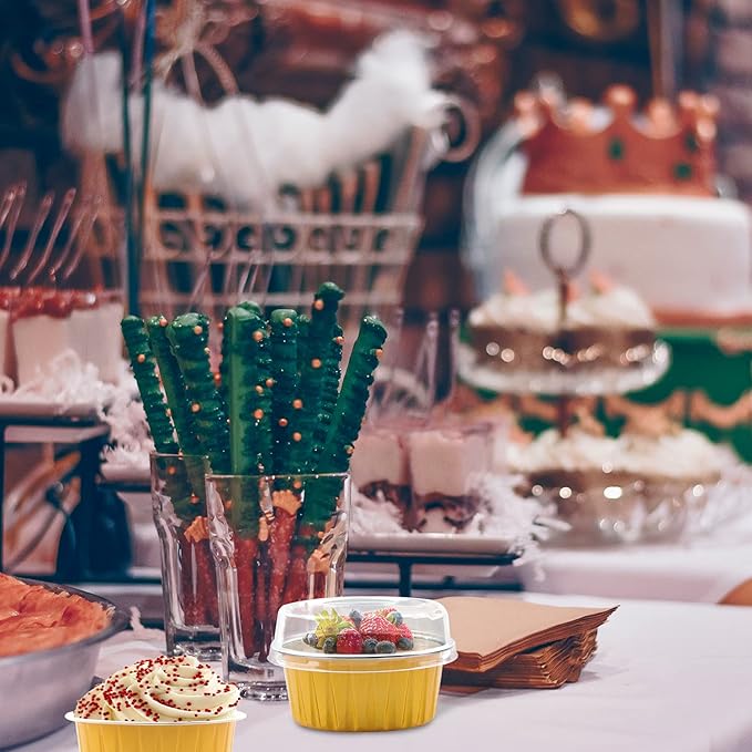 - Less Cleaning, More Baking Enjoyment - These aluminum dessert cups with lids don't need to demold to reduce unneccessary loss, free your hand from scrubbing and cleaning the residue on baking pans. These foil baking cups enable you to focus on the baking and enjoy the delicious desserts, save your lots of time