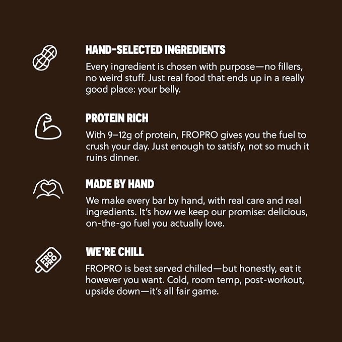 - IT’S JUST A SNACK: Are you tired of seeing the same old protein and meal replacement bars made for fitness? What if there was a high protein snack that wasn’t just for people who work out? Cue FROPRO - the delicious, plant-based protein snack energy bars made for EVERYONE, not just the fitness fanatics! We believe good food fuels you to be the best version of yourself and our snack bars will help you power through your day so you can accomplish all your goals!